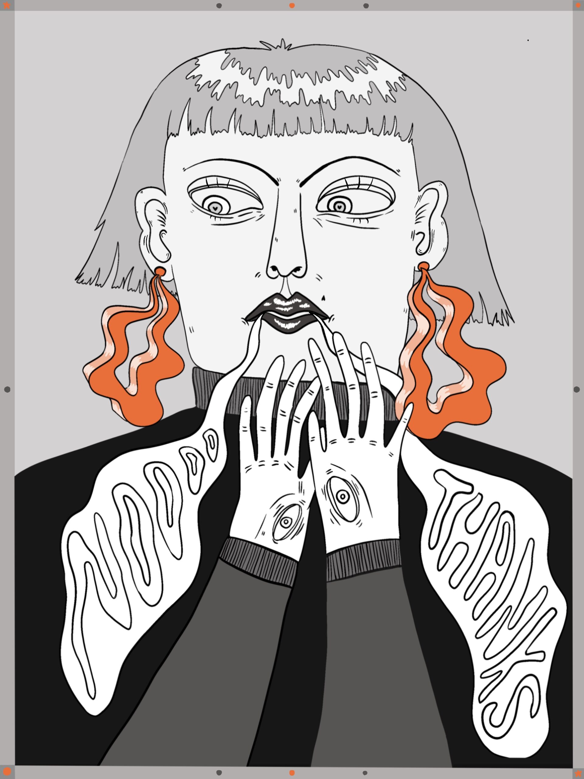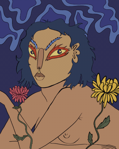 In my visual art I like to use bright colours and display themes related to nature and feminity.